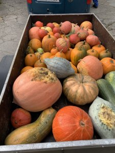 Gerade als wir uns von den Hüttners verabschieden wollen, fährt ein Auto mit einem Hänger auf den Hof. Ein benachbarter Landwirt bringt Kürbisse in unterschiedlichsten Formen und Farben vorbei, die sofort ihren Platz im hübschen Innenhof einnehmen. Hofkater Juri inspiziert Hänger, Besucher und Kürbisse neugierig und tobt dann wieder über den Hof. Denn wer es noch nicht wusste: Ohne eine Katze, das haben wir bei unserem Besuch gelernt, ist ein Mühlenhof nicht komplett.