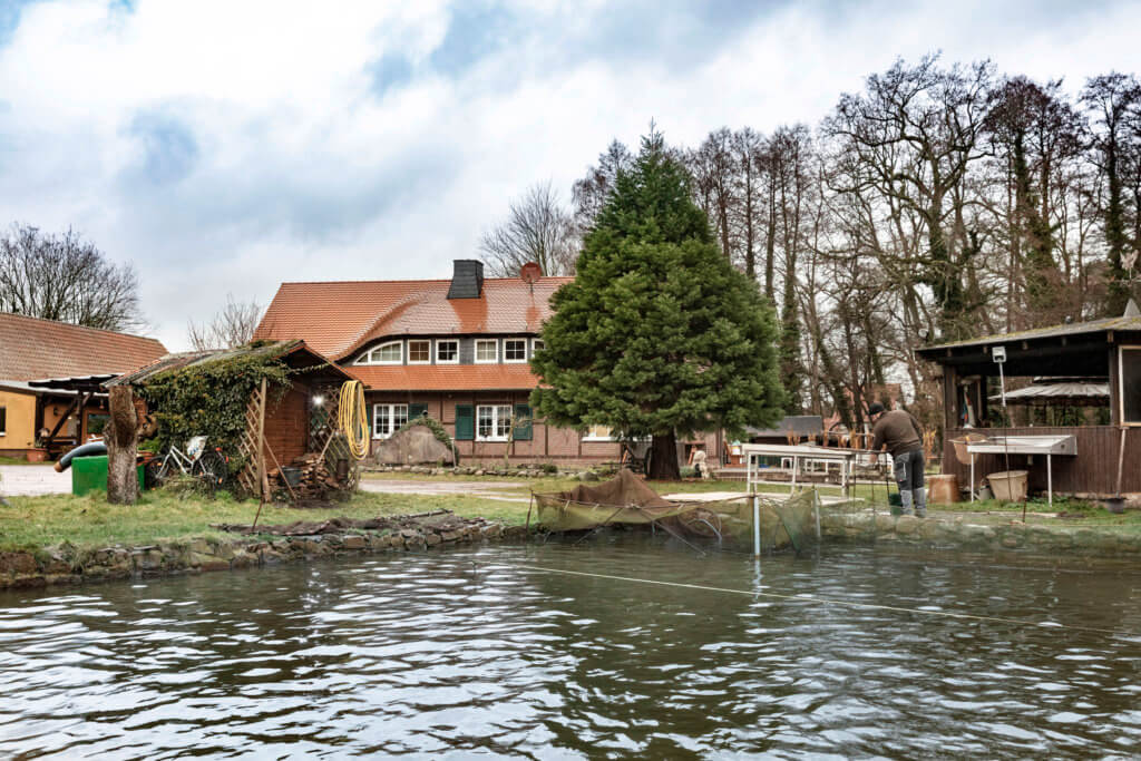 Fischers Fritz fischt frische Fische?… und die kommen dann ebenso frisch auf den Tisch. Die Wege von den unzähligen Teichen im Jerichower Land, in denen sie gezüchtet werden, auf die Teller der Fischliebhaber sind kurz. So wie im Fischereibetrieb Marx in Wüstenjerichow. „Uns können die Kunden dabei zuschauen, wie wir ihren Wunschfisch direkt aus dem Wasser holen“, sagt Besitzer Uwe Marx und fügt hinzu, dass der Wunschfisch Nummer eins hier in der Region ungeschlagen die Forelle sei. Gefolgt vom Karpfen. „Wir züchten Regenbogenforellen und Bachforellen“, so der 62-jährige Fischwirtschaftsmeister. Die kommen hier auch auf den Teller. Seine Frau Margit, die die Gaststätte managt, bereitet uns heute eine Forelle „Müllerin Art“ zu. „Das Traditionsgericht schlechthin für alle, die es gebraten mögen“, sagt sie.