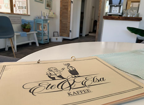 Das Konzept von „Ete & Elsa“ bleibt auch nach der Wiedereröffnung an neuem Standort bestehen: „Vorrangig sind wir ein Café“, so Jessica. „Aber es gibt auch kleine Häppchen zu moderaten Preisen. Man muss ja essen und bei uns kann man sich hinsetzen und wird nicht arm dabei.“ Ihrem Stil sind die beiden auch bei der Einrichtung treu geblieben. Die mit „Ete & Elsa“ bedruckten Kissen durften neben den unzähligen Kaffeemühlen aller Couleur und zahlreichen Postkarten mit an den neuen Standort umziehen. Freundliche, helle Farben, große Fenster und viele kleine Lebensweisheiten in Form von Schildern und Postkarten verpassen Innen- und Außenbereich einen ganz besonderen Charme.