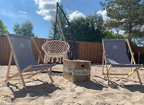 2019 eröffneten die beiden das Café „Ete & Elsa“ - Steffi Lingner erfüllte damit den Traum ihrer Großmutter Ete und deren Nachbarin Elsa, die immer davon geträumt hatten ein Café zu betreiben. Das gemütliche Café mit Wohnzimmercharme in der Niegripper Chaussee/Siedlung hatte sich schnell einen Namen gemacht, doch die Corona-Zeit bedeutete eine Zwangspause. Für Steffi Lingner allerdings kein Grund sich auszuruhen. In Ihrem Kopf reifte die Idee eine Art Strandbar nach Burg zu holen. „Viele Freunde fahren nach Feierabend in die Strandbar nach Magdeburg. Ich habe mich gefragt: Warum holen wir sowas nicht nach Burg? Es muss ja gehen…“ Der Schuttplatz rund um das marode Gebäude war ihr schon lange ein Dorn im Auge und so nahm die Idee Gestalt an. Gesagt, getan - im Oktober 2020 starteten die Umbaumaßnahmen in kompletter Eigenregie. Mit tatkräftiger Unterstützung von Freunden und Familien verwandelte sich sowohl die alte Halle, als auch der Außenbereich in eine kleine Wohlfühloase, die nun pünktlich zur Sommersaison eröffnet werden konnte. Der große Außenbereich mit Liegestühlen, Sonnenschirmen und Plattenmöbeln versetzt die Besucher dabei augenblicklich in Urlaubsstimmung. Einfach „Sonne, Sand und mehr“!
