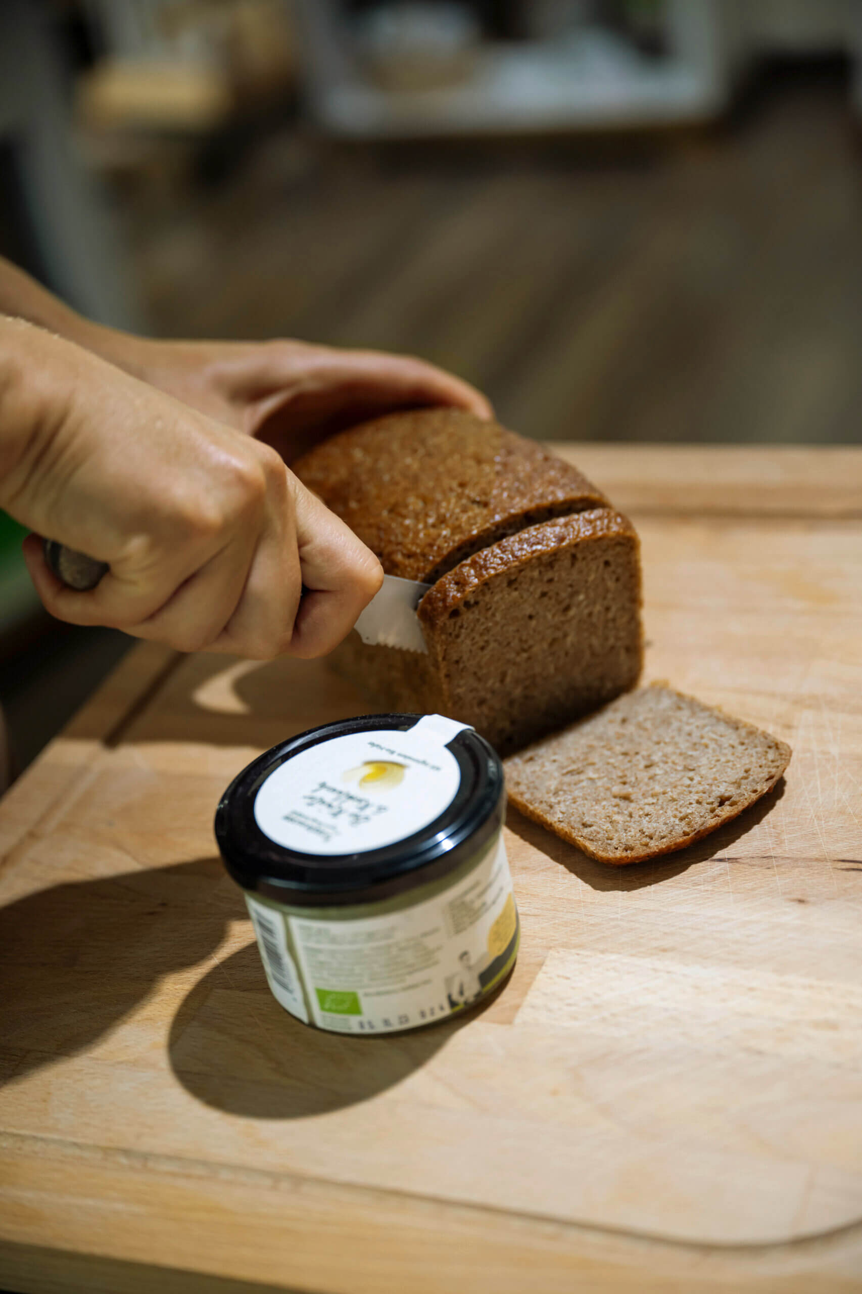Hier im Laden bieten wir – neben Kosmetik – zugleich gesunde Lebensmittel an. Zum Beispiel Brot aus gekeimtem Getreide, Olivenöl, Kokosfett sowie Bio-Brotaufstriche. Man kann aber auch selbst Buchweizen, Quinoa oder Hafer keimen. Basenfasten empfehle ich über eine Dauer von einer bis zu zwei Wochen. Das klassische Buchinger-Fasten ist schon deutlich strenger. Es erlaubt keinerlei feste Kost. Morgens Tee mit Zitrone, bei Bedarf ein wenig Honig. Mittags gibt’s einen Obst-/Gemüsesaft und abends eine Gemüsebrühe. Und zwischendurch reichlich Kräutertees und Wasser. Ich empfehle dafür fünf Tage. Ganz wichtig: Den Körper mit zwei Entlastungstagen vorbereiten und auch die Aufbautage danach nicht vergessen. Die Königsdisziplin ist das Fasten nur mit Tee und Wasser.